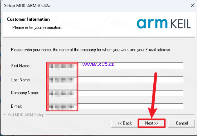 输入【First Name、Last Name、Company、Email】(可随便填写),点击【Next>>】