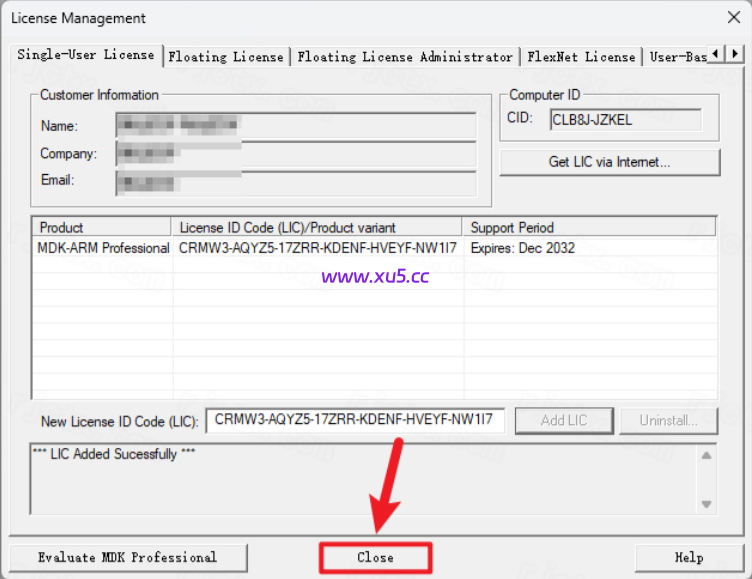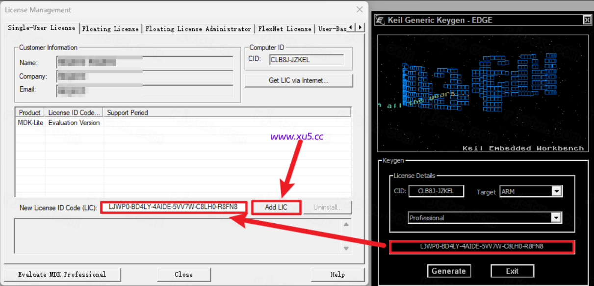 输入激活码:①使用快捷键“Ctrl+C”复制激活码—-②使用快捷键“Ctrl+V”将激活码粘贴到【New License ID】中—-③点击【Add LIC】