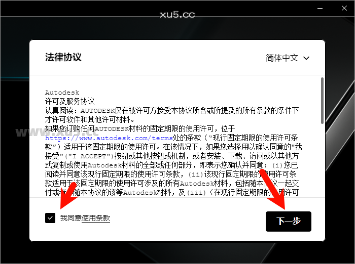 勾选同意下一步