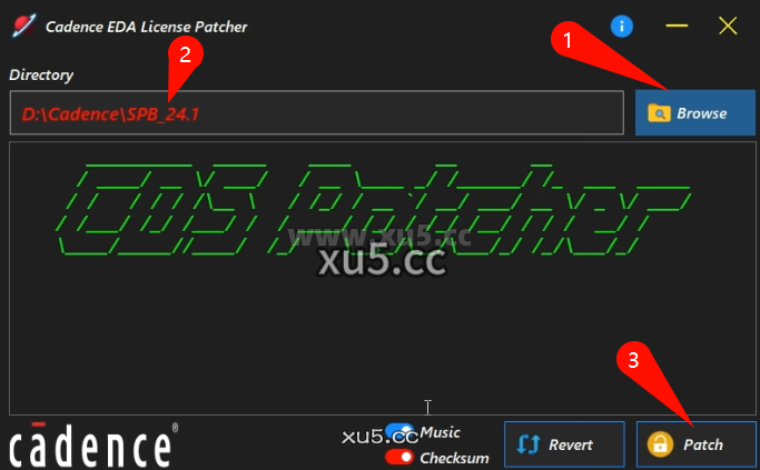 打开【补丁】文件夹,右键管理员运行【CadenceLicensePatcherWin.exe】