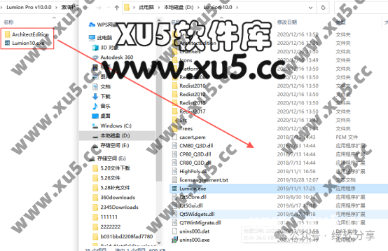 11.再把激活补丁文件夹里面的”Lumion10.exe“和文件夹”ArchitectEdition“复制到安装目录”Lumion 10.0“文件夹中。(安装目录也可以右键桌面图标打开文件所在位置)